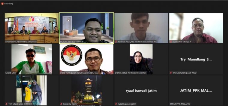 Anggota Bawaslu Jatim, Purnomo Satrio Pringgodigdo mengungkapkan 3 fokus akses bagi disabiltas. Yakni partisipasi, hak dipilih dan hak memilih. Hal ini disampaikan dalam Rapat Koordinasi Peluncuran Buku Bawaslu Kabupaten Malang dengan Komisi Nasional Disabiltas Republik Indonesia, Jumat (27/05/2022) via daring.