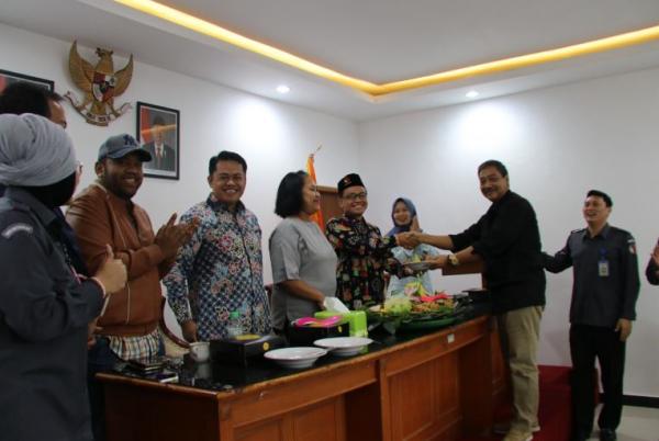 Selepas acara seremonial tampak Teguh pamit satu persatu ke setiap sudut ruangan Bawaslu Jatim.