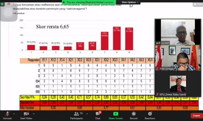 “Ternyata hanya 59,7% dari responden yang tahu. Survei itu belum berbicara mengenai apa itu tugas KPU atau tugas Bawaslu? Bagaimana dengan pilkadanya? Tentu menjadi perhatian bagi penyelenggara pemilu dan kita bersama. Survei ini menjadi PR (pekerjaan rumah) kita semua agar mengajak terlibat dalam proses Pemilu 2024 hingga menjadi pemilih,” ajak dia.