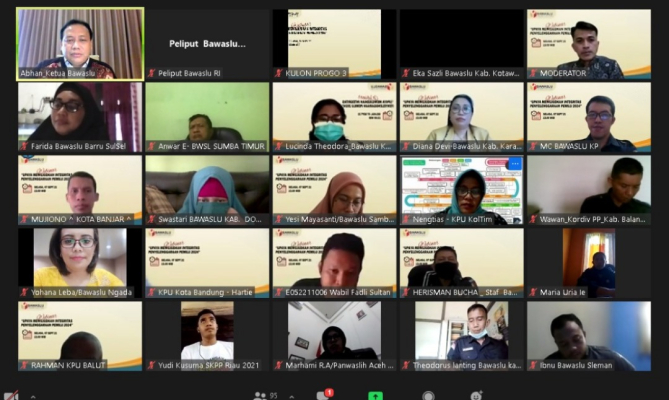 Ketua Bawaslu Abhan saat menjadi keynote speaker dalam webinar Upaya Mewujudkan Integritas Penyelenggara Pemilu 2024 yang diselenggarakan Bawaslu Kabupaten Kulon Progo, Selasa 7 September 2021/Foto: Robi Ardianto (Pemberitaan dan Publikasi Bawaslu RI)Jakarta, Badan Pengawas Pemilihan Umum - Ketua Bawaslu Abhan mengatakan parameter integritas penyelenggara pemilu telah diatur dalam kode etik penyelenggara pemilu. Hal itu menurutnya menjadi pedoman bagi seluruh penyelenggara dalam bekerja.