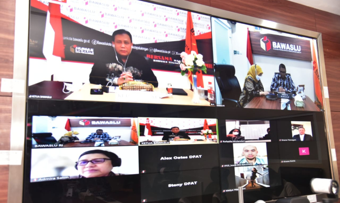 Jakarta, Badan Pengawas Pemilihan Umum - Bawaslu melakukan rapat tripatrit bersama The Department of Foreign Affairs and Trade dan International Foundation for Electoral System (IFES) secara virtual. Dalam kesempatan itu, Ketua Bawaslu Abhan menyampaikan persiapan pengawasan Pemilu Serentak 2024 serta melalui program Sekolah Kader Pengawasan Partisipatif (SKPP), Bawaslu berkomitmen mengajak masyarakat untuk ikut berpartisipasi dalam pengawasan pemilu.
